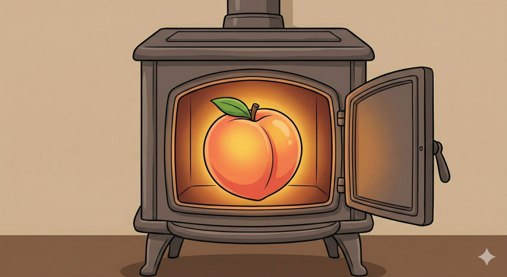 - Картинка: Ви відкриваєте стару піч, а там замість дров печеться велетенський рум'яний персик.