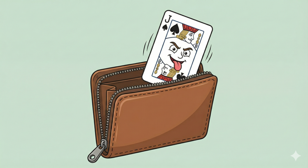 - Картинка: Ви відкриваєте свій гаманець, а звідти вистрибує картковий валет і показує язик.