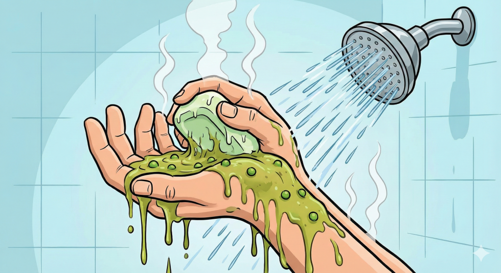 - Картинка: Ви заходите в душ, берете мило, але воно розчиняється і перетворюється на гарячий гороховий суп, що тече по руках.