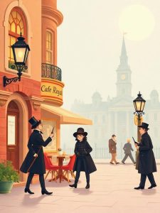 «Суматоха біля «Кафе Рояль» — це детективна повість, написана Кларенсом Руком. Події розгортаються у вікторіанську епоху. Матюрен — небезпечний злочинець. Його розшукує поліція. Він скоїв злочини в кількох країнах під різними іменами. Його справжня особистість невідома. Багато людей, які з ним працюють, не знають, хто він. Вони не знають, як виглядає цей злочинець. Саме тому поліції так важко його спіймати. Лише двоє людей бачили його обличчя. Один із них — менеджер банку. Матюрен вбив його в Детройті. Інша — дівчина менеджера. Вона прагне справедливості. Вона вирішує помститися за смерть свого хлопця. Щоб заарештувати Матюрена без застосування насильства, дівчина має дуже незвичайний план.