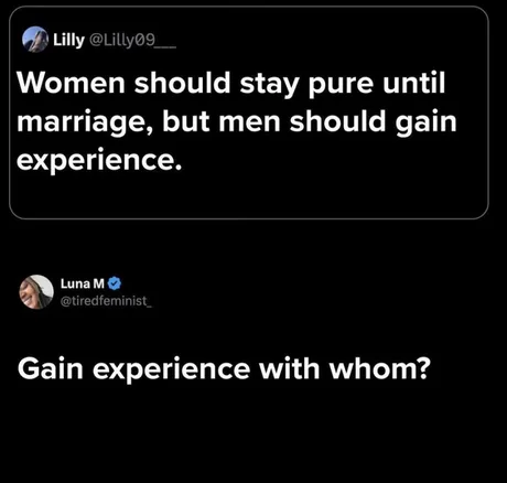 Women should stay pure until marriage, but men should gain experience.